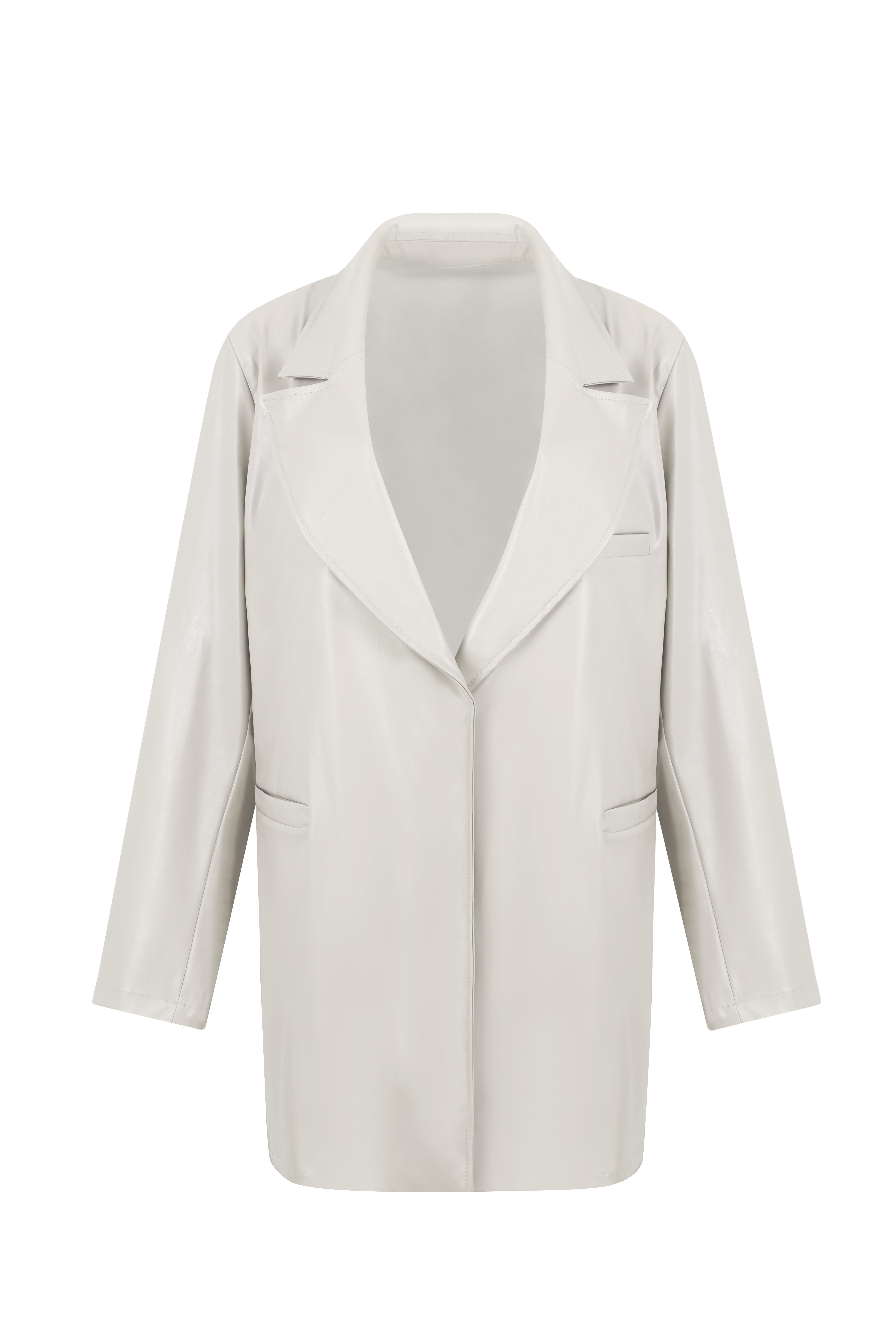 Bej Vegan Deri Oversıze Ceket