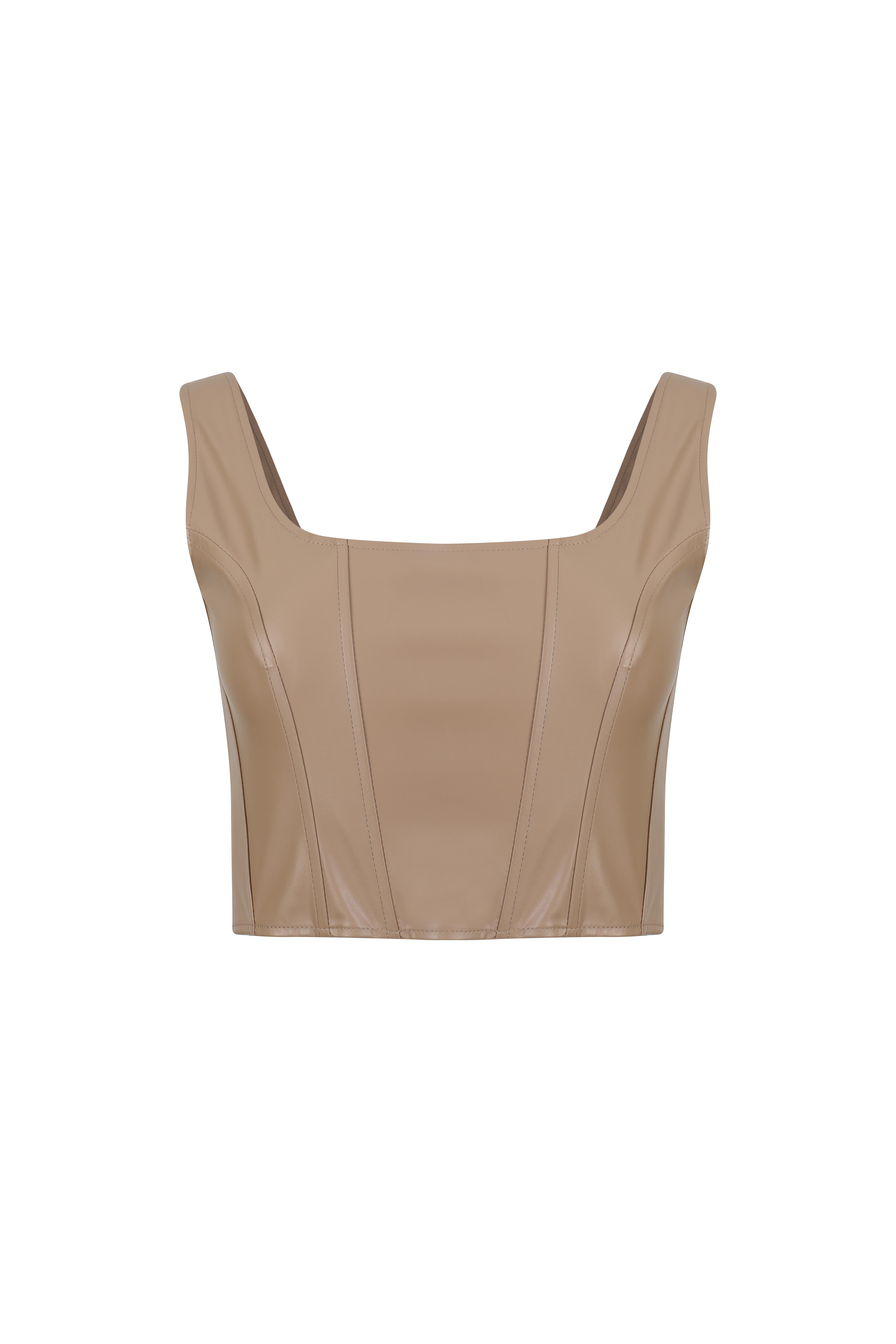 Camel Balenli Vegan Deri Crop Top