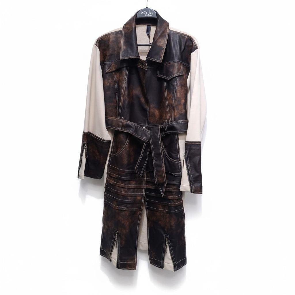 KAHVE DERİ DETAYLI TRENÇKOT